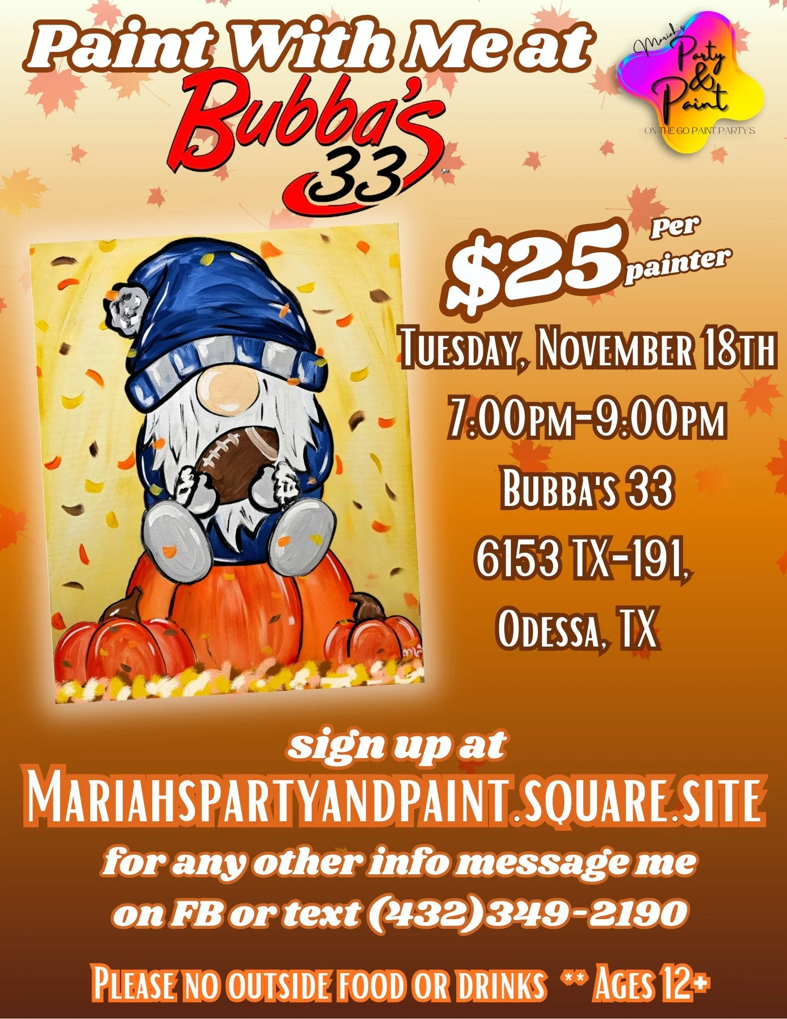 Come and paint with me in a fun bar style environment alongside yummy food and ice cold drinks. We will be painting on a 16×20 sized canvas using acrylic paints. All paint supplies will be provided with your ticket purchase. All food and drinks will be purchased separately at the event. Refunds are available if you cancel seven days prior to the event. If for any reason, you do not cancel 7 days before the event, you will be given the option between a DIY kit or a credit to attend a future event of your choosing.